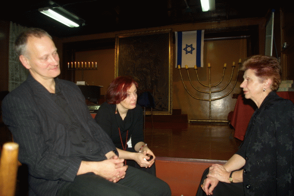 Sylwek z Krystyną Szweda i Izabela Banyś (z domu Kamionka) podczas obchodów 60 rocznicy powstania Gminy Wyznaniowej Żydowskiej w Katowicach.