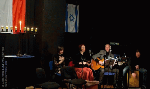 Komentarz:"U Pana Boga za Piecem" (święto Chanuka 5772 w Katowicach w klubie"Marchołt"). Pierwsze publiczne wykonanie piosenki "Życie jest żeby żyć". Od lewej: Patrycja Smok, Krystyna Szweda, Sylwek Szweda i Jędrzej Szweda.